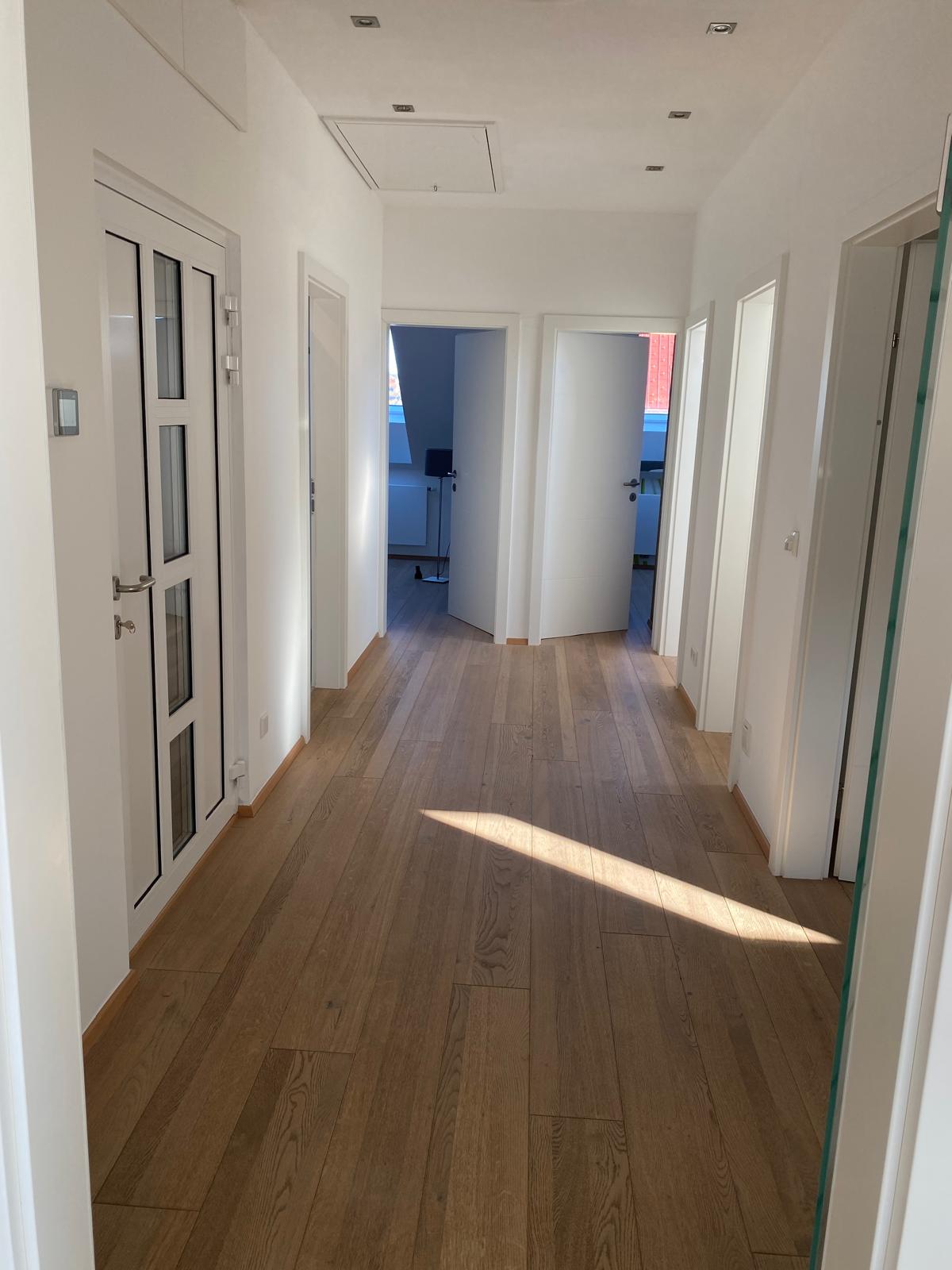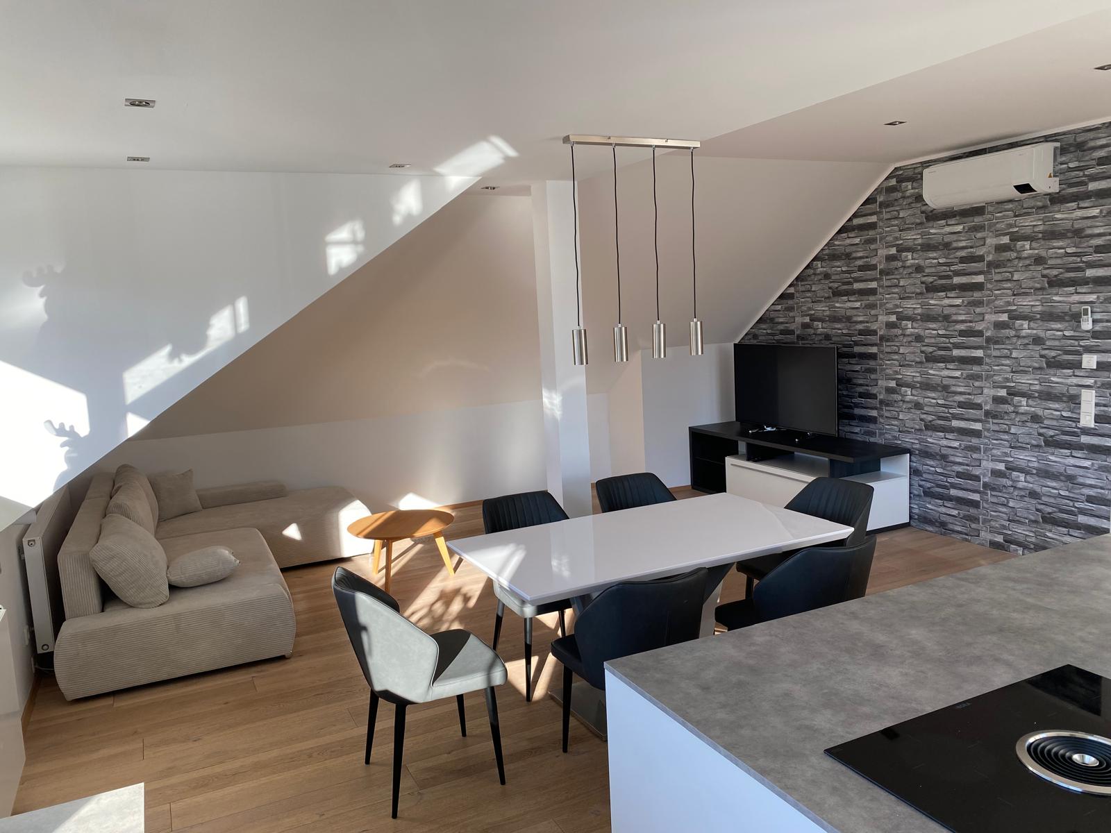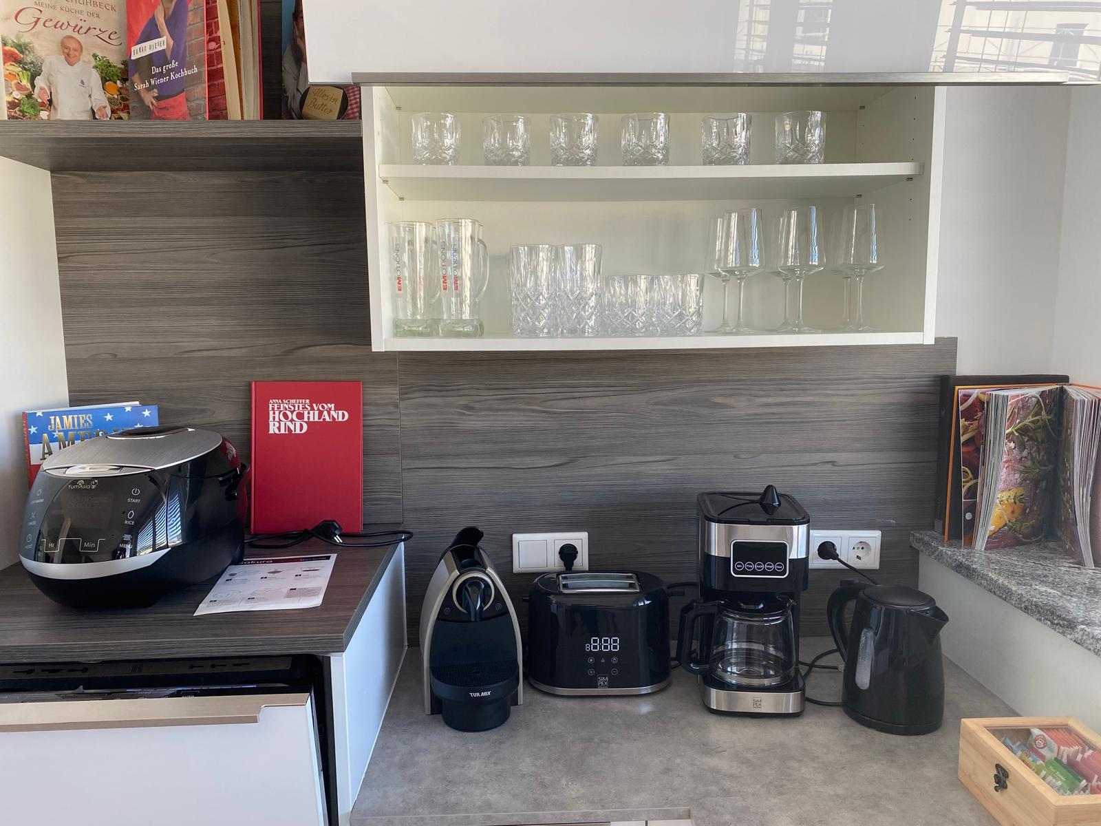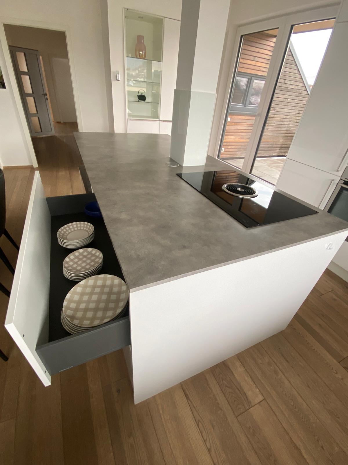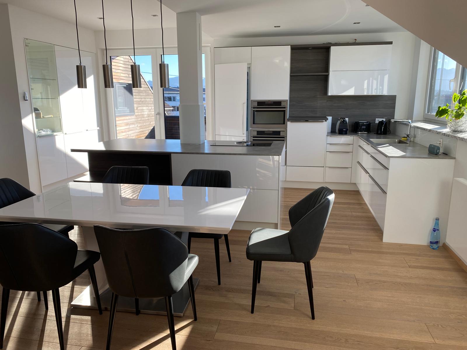 Zusätzlich gibt es ein großzügiges Wohnzimmer mit TV sowie ein Esszimmer, das mit einer modernen Haka Küche ausgestattet ist. Die Küche bietet alle Annehmlichkeiten wie einen Geschirrspüler, Dampfgarer, Backofen sowie einen Kühlschrank mit Gefrierkombination.
