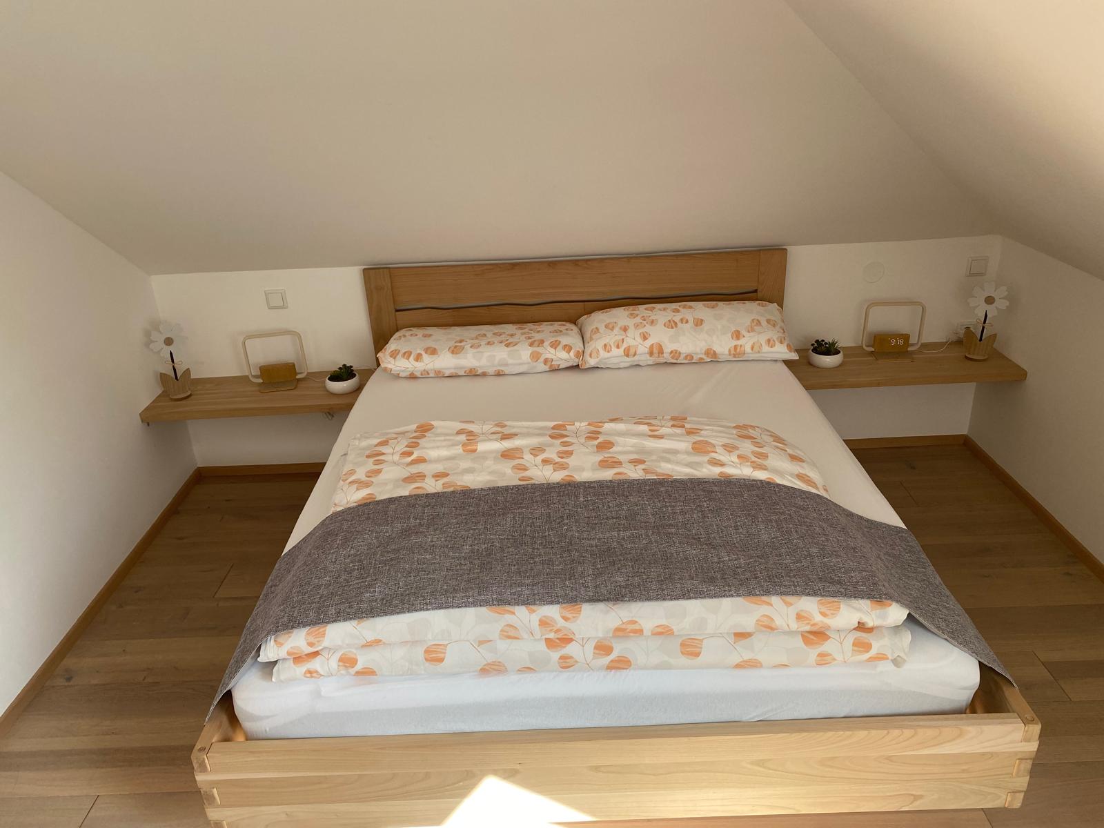 Ein naturbelassenes Kirschholz-Zimmer mit Platz für 2 Gäste, ideal für eine ruhige Nachtruhe. Ein Babybett kann auf Wunsch hinzugefügt werden.